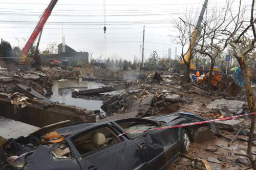 经青岛“11·22”中石化东黄输油管道泄漏爆炸特别重大事故调查组认定,事故发生的直接原因是:输油管道与排水暗渠交汇处管道腐蚀减薄、管道破裂,原油泄漏流入排水暗渠,现场处置人员采用液压破碎锤在暗渠盖板打孔破碎,产生撞击火花,引发暗渠内油气爆炸。