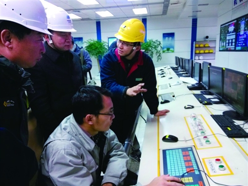 执法人员查看章丘华电中控室机组烟气系统