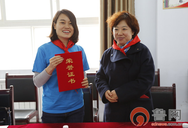 济南市妇联儿童部李娴君部长向世茂代表颁发爱心企业证书