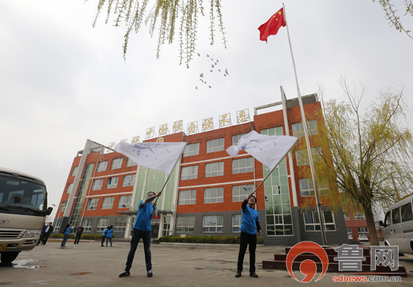 公益行活动之前,一场春雨降临大地,滋润了万物,店子小学的校园里也被洗涤得一尘不染。下午14时许,发起本次爱心公益行活动的济南市妇联和鲁网相关负责人以及参与捐助的爱心企业世茂集团山东区域公司的志愿者驱车准时抵达店子小学。当爱心人士走进教学楼后,十余名少先队员拥上前来为他们佩戴了鲜艳的红领巾,公益行活动由此拉开序幕。