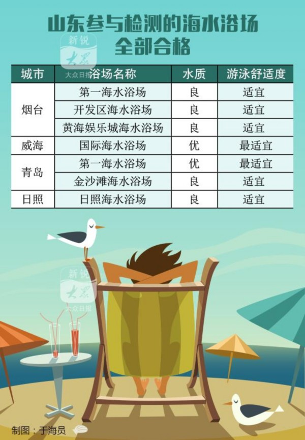 鲁网7月12日讯 最近山东大部分城市最高气温攀升到35度以上,酷暑难耐,很多人出游海边,享受海澡带来的清凉。但海水浴场的水质如何,是否符合游泳标准?近日,党报君从国家环保部公布的2017年部分沿海城市海水浴场水质周报获得了答案,在检测的15个城市的26个浴场水质中(北海银滩公园浴场因暴雨未测),山东共有7个海水浴场参与检测,并且全部合格。