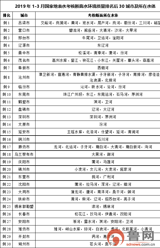 但在2019年1-3月国家地表水考核断面水环境质量排名后30城市及所在水体榜单上,东营、潍坊分别位于倒21、倒28的位置,说明我省水污染防治工作仍需持续发力、久久为功。