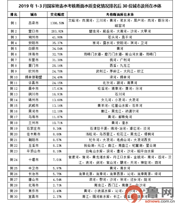 一季度全国地表水环境质量状况发布 山东四市“进步不小”