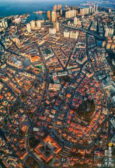 鲁网9月22日讯 新城旧城同框,从近处的总督府旧址,到中部里院,再到远处近海现代高楼,青岛不同时期风格的建筑尽收一图。(图片来自《这里是中国》,人民网、中国青藏高原研究会、星球研究所联合出品,中信出版集团出版,摄影者卢辉)