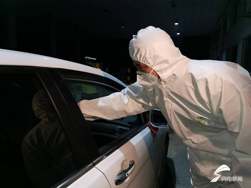 虽然凌晨车流量较少,但检查站民警和卫健防疫人员依然严阵以待,对进出省和入京的车辆人员,尤其是疫情重点地区入鲁进京的车辆人员仔细进行体温筛查。