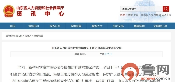 注意! 2月1日起山东省人社厅暂停接待群众来访