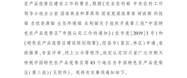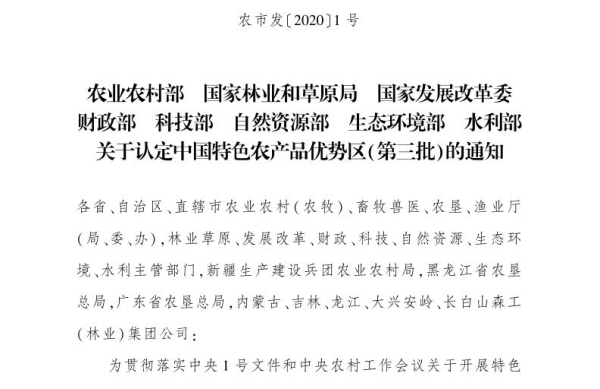 据了解,创建特色农产品优势区是党中央、国务院的重大决策部署,是深入推进农业供给侧结构性改革,实现农业高质量发展,提升我国农业国际竞争力的重要举措。建设好特色农产品优势区,对各级党委政府做大做强特色农业产业,加快农民增收致富具有重要意义,也是各有关部门在打赢脱贫攻坚战和推进乡村振兴战略实施中,充分履行职责、发挥作用的迫切需要。