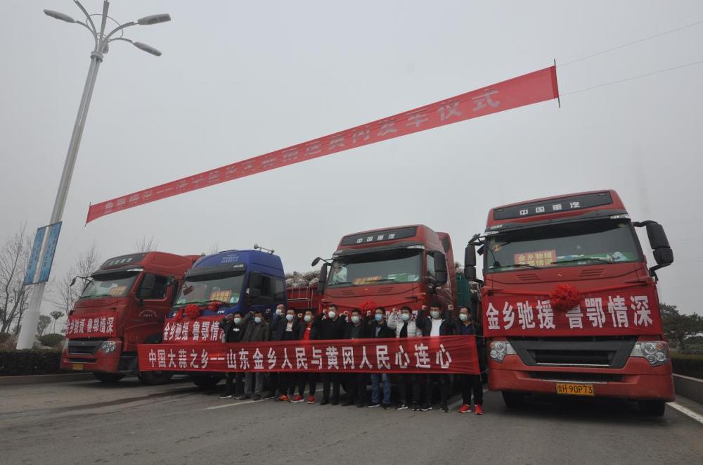 莱阳梨农捐赠40吨爱心梨,齐鲁粮油联盟企业麦香园食品有限公司捐赠了10万个大馒头,菏泽定陶村民自发捐赠的13吨蔬菜,俩小伙轮流开车送达黄冈……