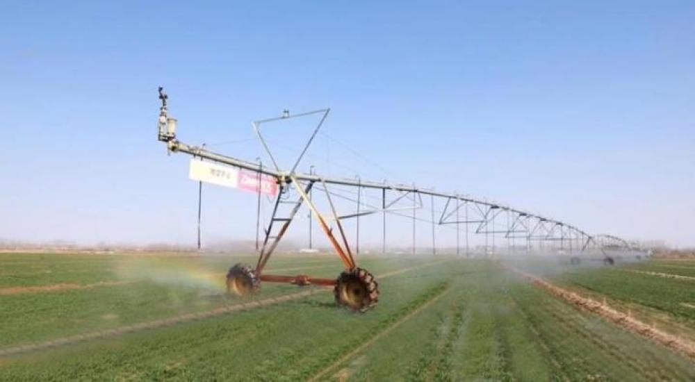 中心支轴式喷灌机在平原县粮食高产示范区内抢抓农时进行作业。