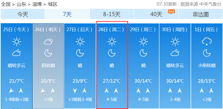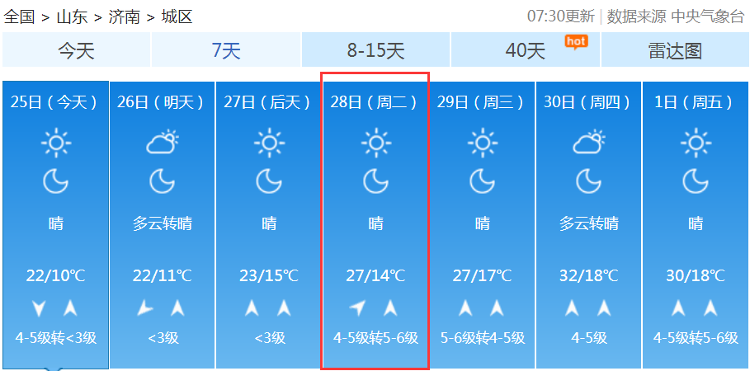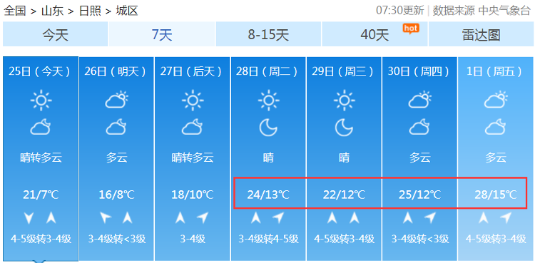 从气温看,今明两天,山东最低气温在4℃到7℃之间,部分地区还将出现霜冻。据中国天气网预报, 25日、26日最低气温在4℃左右,最低气温低迷,在此提醒大家早晚出行需要注意保暖,谨防着凉。
