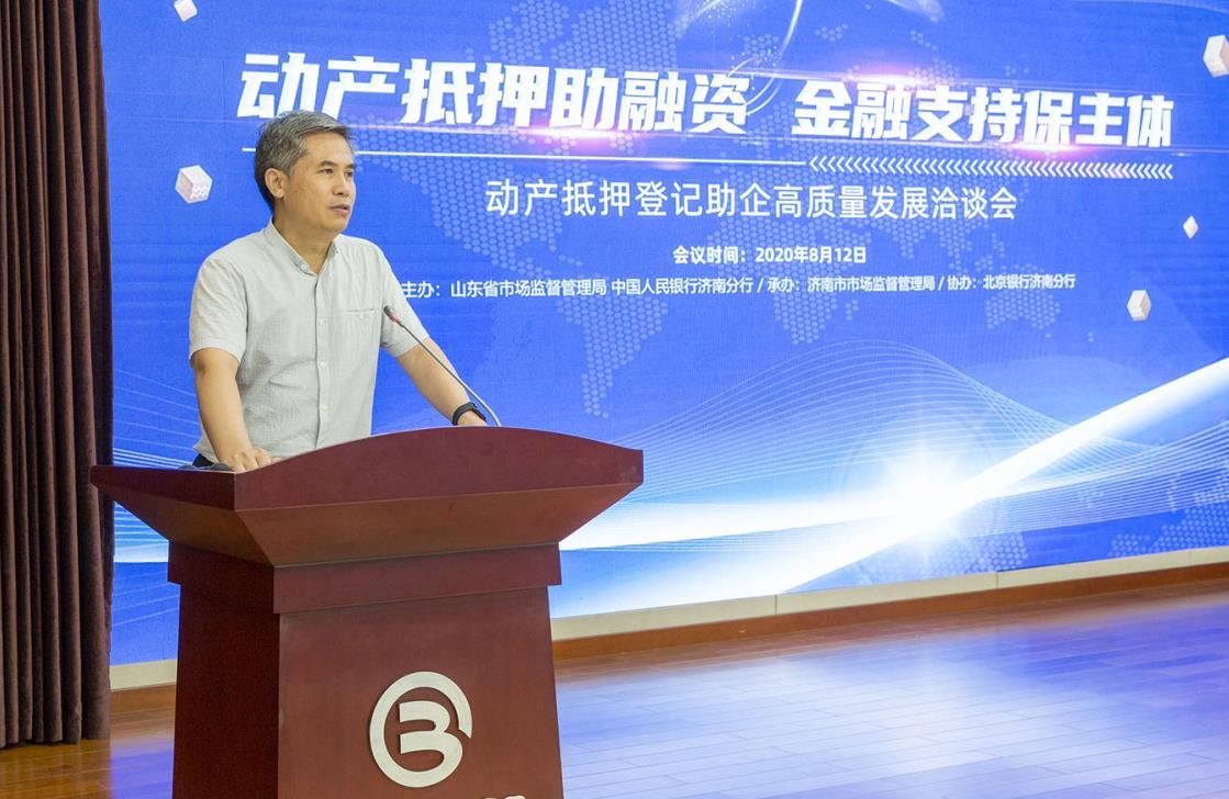 鲁网8月12日讯(记者 王雅茜)今天下午,由山东省市场监督管理局和中国人民银行济南分行主办、济南市市场监督管理局承办、北京银行济南分行协办的动产抵押登记助企高质量发展洽谈会在济南召开。会议以“动产抵押助融资 金融支持保主体”为主题,主要内容是认真落实“六稳”“六保”要求,借助动产抵押登记作用,推动金融机构加大金融产品创新支持力度,搭建银企对接桥梁,帮助中小微企业纾难解困、融资高质量发展。