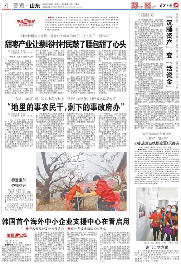 站在蔡峪村的山头上,放眼望去,漫山遍野的枣树为春日里的大山增添了一番别样风采。60岁的村民王永春咧嘴一笑:“我去年卖枣挣了四五万块钱,今年科学精细管理的话,光景比去年还要好!”