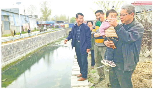 □记者杜辉升 纪伟 报道 4月7日,兰陵县车辋镇车辋村村民在西河沟旁为这项民生工程竖起大拇指。