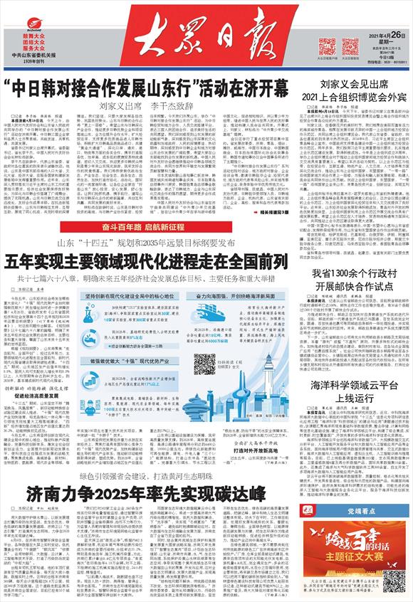 山东“十四五”规划和2035年远景目标纲要发布