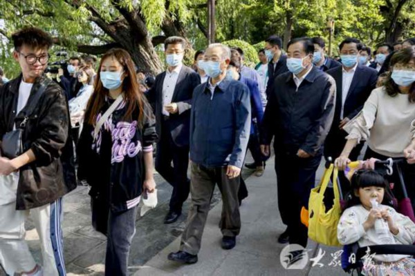 春山如笑,花明柳绿。刘家义来到佛慧山景区、大明湖景区,听取景区节日期间优化游览秩序、保护游客安全情况介绍,察看游客服务中心,与游客、志愿者握手交流,叮嘱工作人员要切实做好疫情防控、游客疏导工作,健全服务设施,确保游客安全,让大家尽享绿水青山之美、领略深厚人文底蕴。在棋盘街菜市场,刘家义详细询问蔬菜、水果、肉类、生鲜、副食品供应和销售情况,与商户深入交流,祝他们节日愉快。济南火车站人员密集、人流量大,安保维稳压力大、责任重。刘家义来到车站入口,看望节日期间坚守岗位工作人员,检查疫情防控和人员安检情况。他强调,要切实增强工作责任感,严格落实疫情防控措施,确保车站安全运营,方便群众出行,擦亮省会“窗口”。