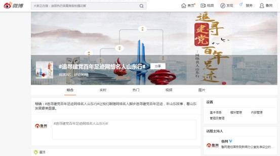 活动邀请的网络名人和网媒记者从独特视角出发,将活动期间在齐鲁大地的见闻感受全方位、立体式地展示给广大网民。截至5月13日15时,新浪微博话题#追寻建党百年足迹网络名人山东行#阅读量达2亿次。同题抖音话题创作204个短视频,阅读量183.2万次。网络媒体发稿及转载15106篇,其中@科技的那些事、@百花香帅、@巍岳钦禹、@小满、@沅汰、@魏新等网络名人发博650余篇,转发量达12084条。