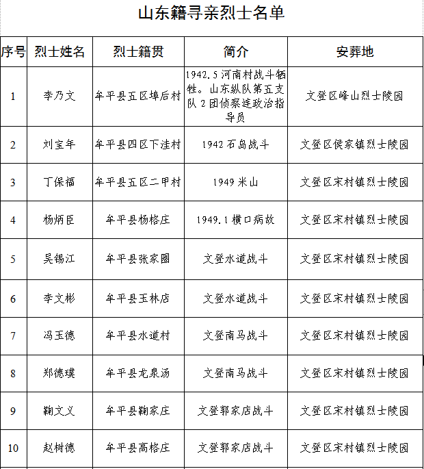(潍坊、临沂、泰安、淄博、安徽籍烈士线索请拨打热线1,其他地区请拨打热线2)