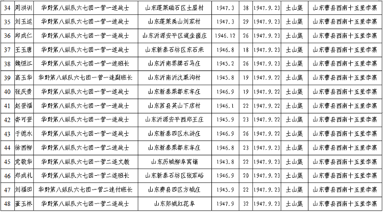 (注:受行政区划调整、当时部分参军人员文化程度及方言等因素影响,名单上所登记姓名或地址可能与实际有差异,有的需要按照人名、地名的同音字或谐音字进行联想对比寻找。对于您的爱心与耐心,我们深表感谢。)
