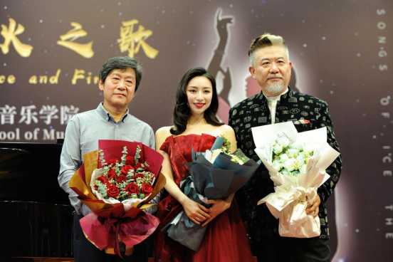 音乐会上,不仅演唱了舒伯特《天鹅之歌》作品集中的四首、哈恩的三首等西方名曲,还倾情演绎了体现家国情怀的作品。来自英国伯明翰皇家音乐学院的仲一博士、美国曼哈顿音乐学院的安子诚两位青年钢琴家担任本场音乐会的钢琴伴奏,此外,他们也为大家献上了精彩绝伦的钢琴表演。多种艺术表演形式,充分展现出了她多方面的艺术才华。