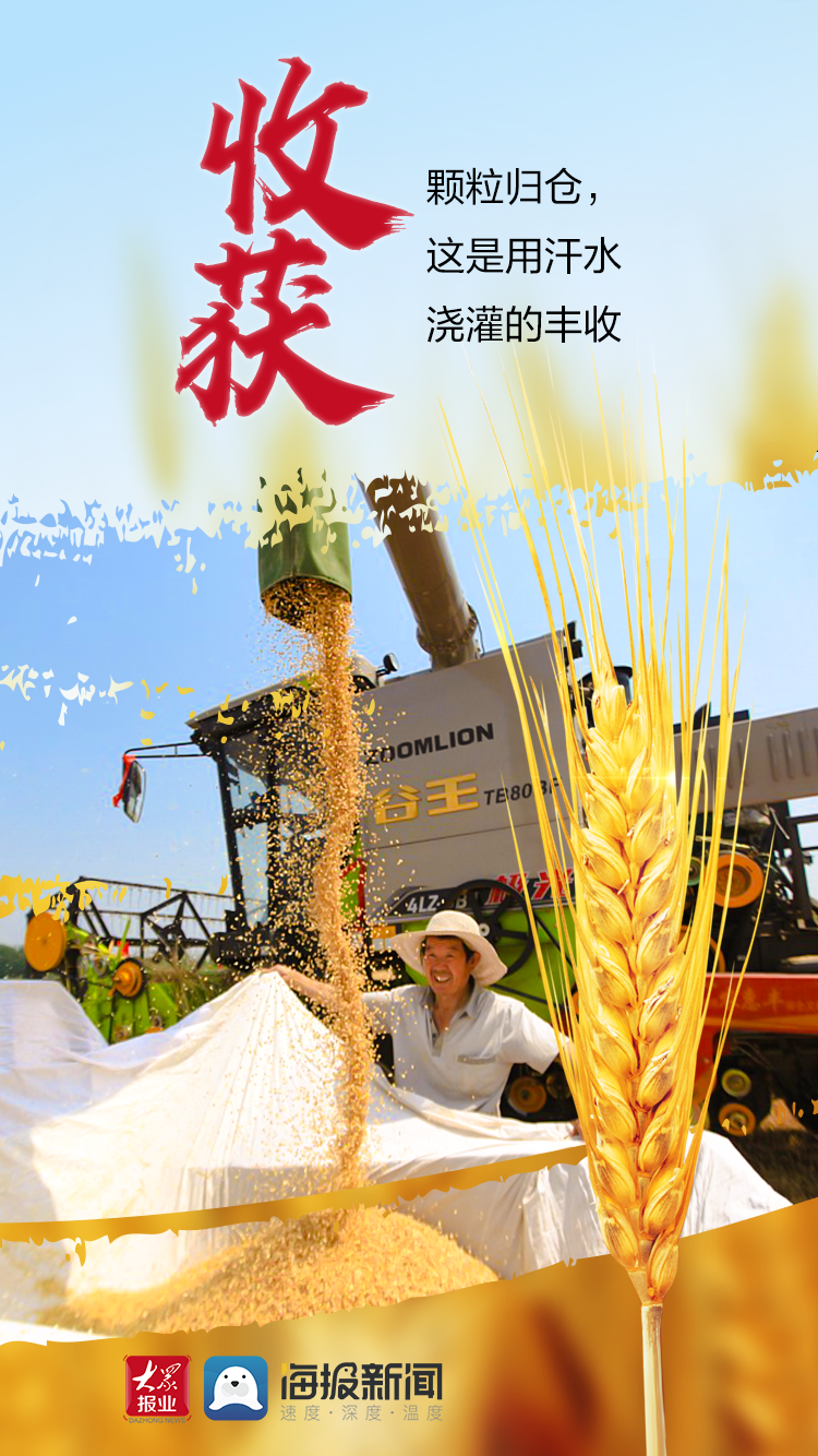微海报丨山东小麦开镰收割 汗水浇灌丰收