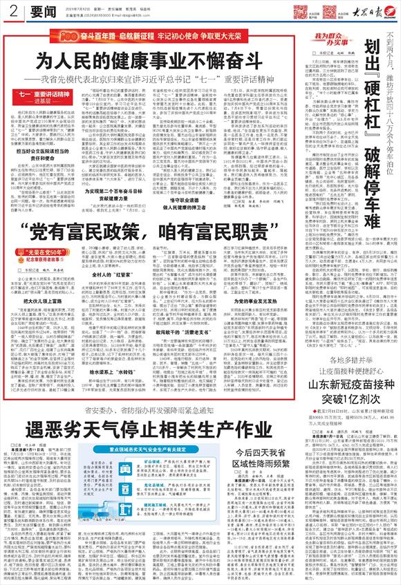 “此次我代表战斗在一线的同志们去现场,感到无上光荣!”7月2日,山东省疾控中心组织党团员学习习近平总书记“七一”重要讲话精神,省疾控中心突发公共卫生事件应急处置领域首席专家雷杰发言时十分激动。此前,雷杰作为抗击新冠疫情先进个人代表前往北京,参加了庆祝中国共产党成立100周年大会。