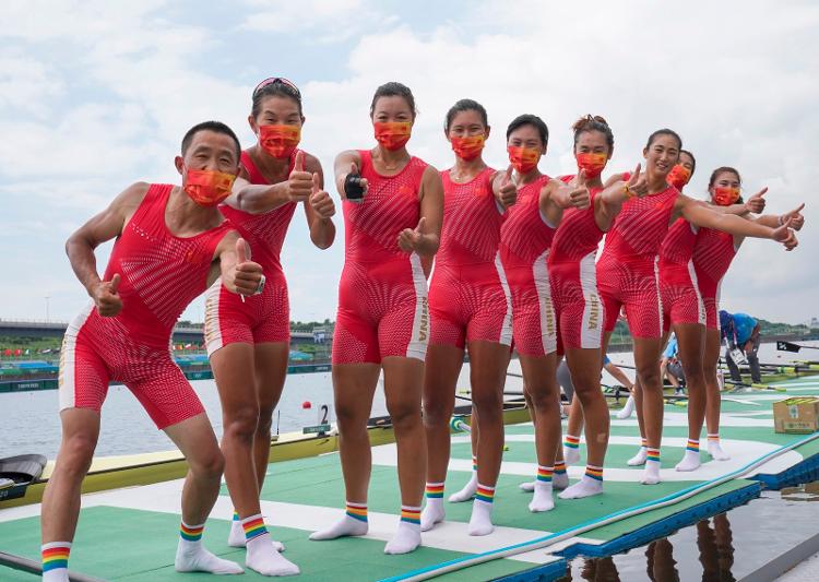 张德常(左一)/郭淋淋(左二) /张敏(左五):女子八人单桨有舵手季军