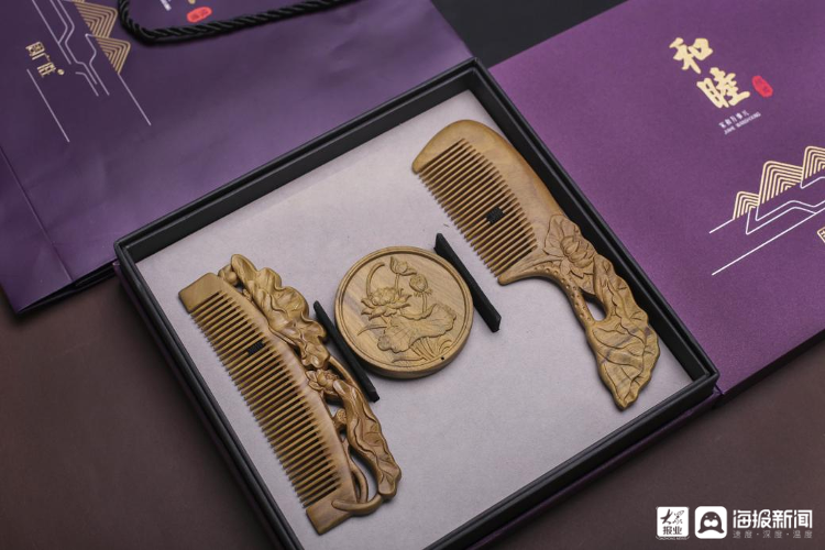 记者了解到,此次参展,周广胜将带来黑金檀材质的花影木梳、绿檀材质的和和美美木梳套装以及沉贵宝材质的天使气囊木梳等非遗产品。