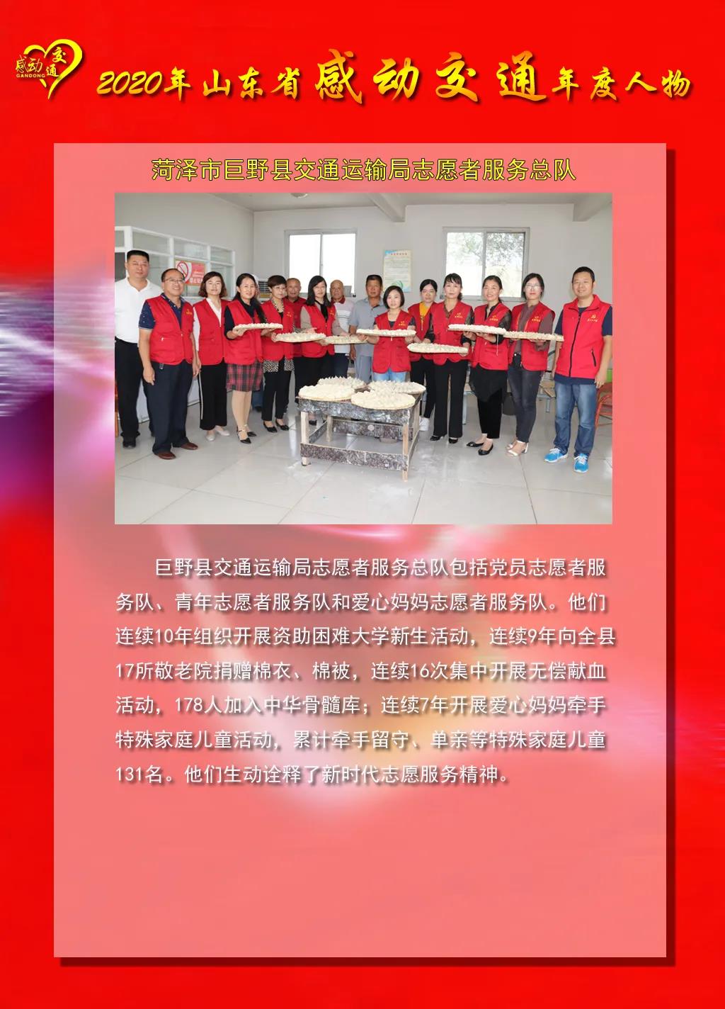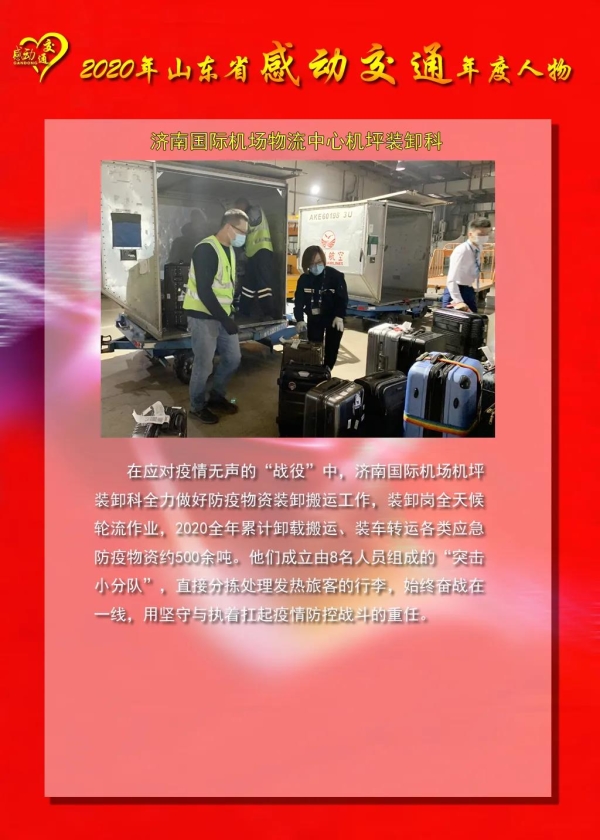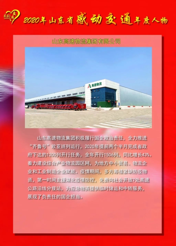 鲁网9月27日讯 为大力弘扬新时代交通精神,营造崇德向善的社会风尚和爱岗敬业的行业风气,激励广大交通运输干部职工担当作为、砥砺奋进,省交通运输厅组织开展了“2020年山东省感动交通年度人物推选宣传”活动。经过报名推荐、初步评选、网络点赞推选、专家评审、资格复审、网上公示等环节,最终确定了山东高速物流集团有限公司等11名团队(个人)为“2020年山东省感动交通年度人物”。