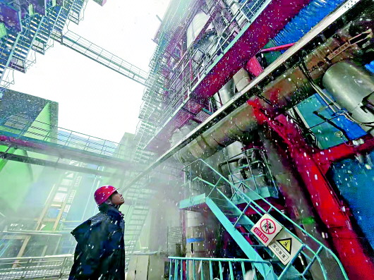 11月7日,省城迎来一场大雪,气温骤然下降。图为济南一家热源厂内,供热人员正在查看设备运行情况。