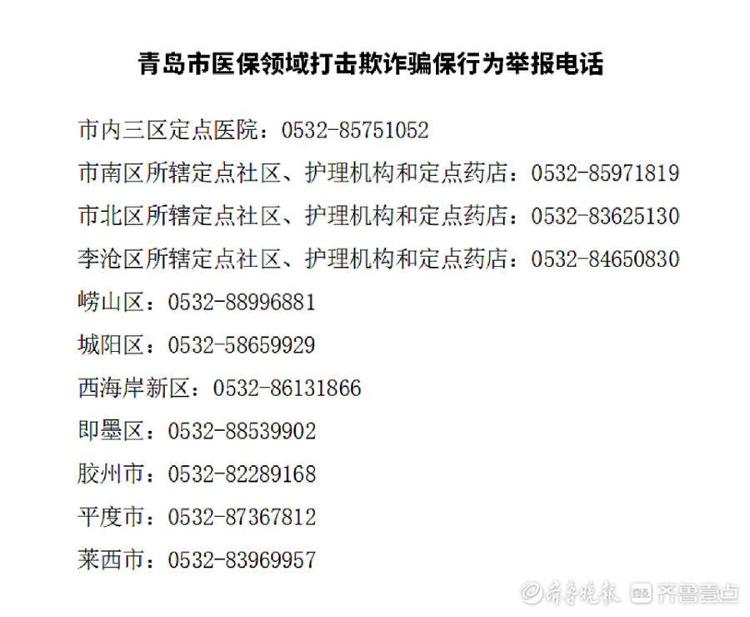 青岛市各级医保部门都设立了举报电话,对举报查实的可给予最高10万元奖励。