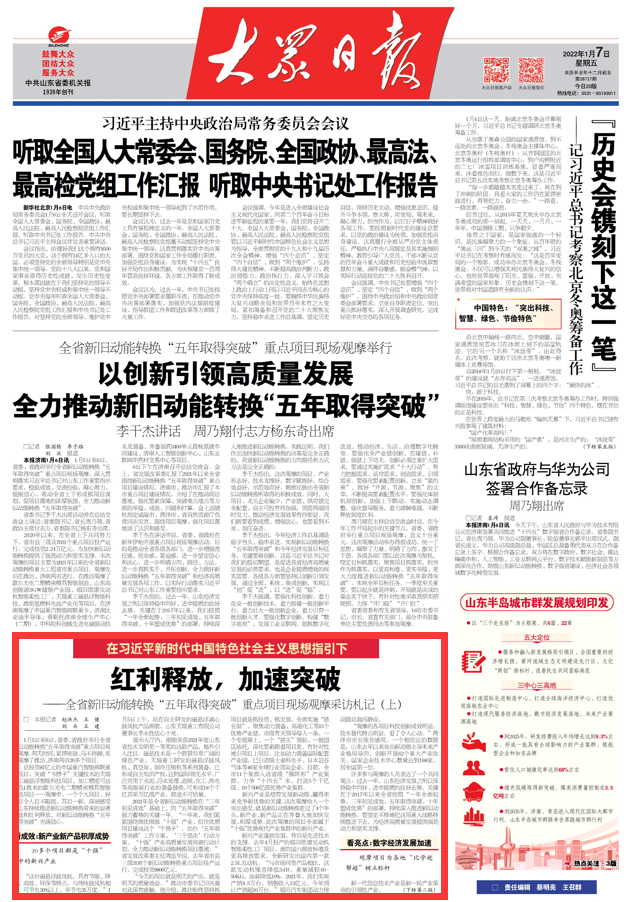 大众日报头版聚焦:动能转换重点项目观摩,看这些关键词