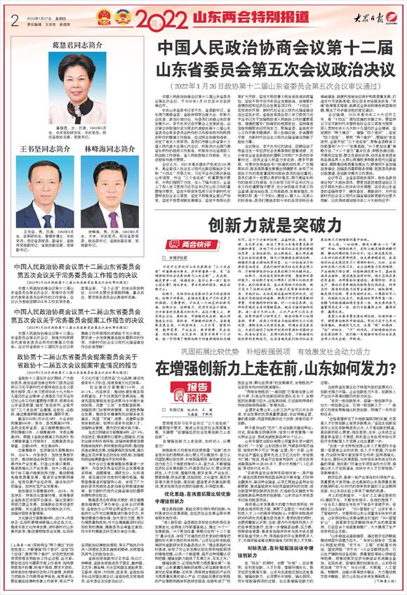 “进入新阶段,省委顺应目标定位和形势任务发展变化,在既有工作部署基础上,提出‘六个一’发展思路、‘六个更加注重’策略方法和‘十二个着力’重点任务,体现了对肩负的历史使命的精准把握和对大局大势的科学研判。”山东社会科学院政策研究室副研究员孙晶委员认为,“理念思路的与时俱进,体现了对山东发展比较优势和短板弱项的精准把握。从另一个侧面看,离开这种清醒认识和把握,增强创新力就成了无源之水、无本之木。”
