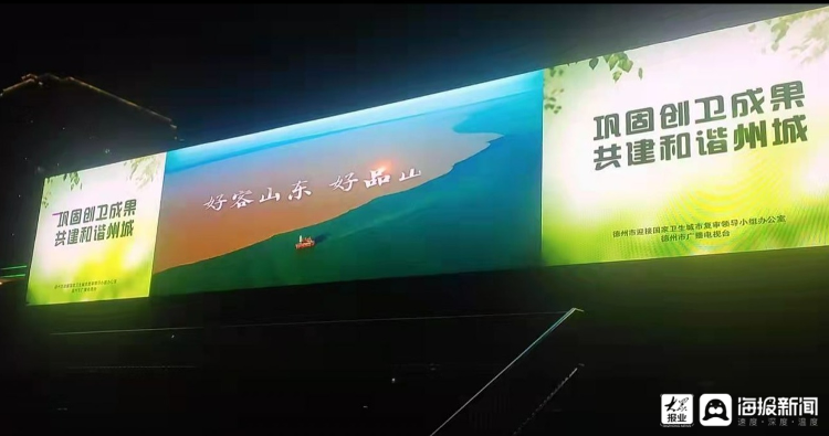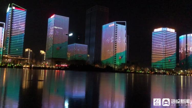 滨州城市地标点亮“好品山东”主题灯光秀。