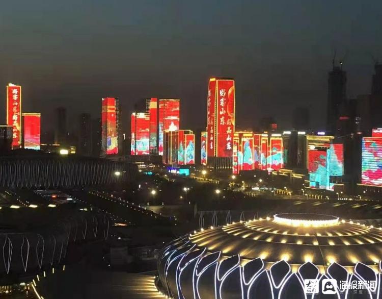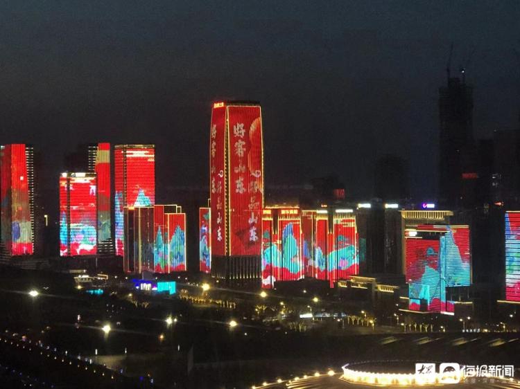 济宁城市地标点亮“好品山东”主题灯光秀。