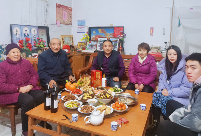 当天一大早,73岁的张传利,和76岁的老伴刘茂秀便开始忙活起来。在县城工作的儿子一家四口,也回家过年。不一会儿,对联和红“福”挂上墙,零食茶水摆上桌,全家开始准备年夜饭。