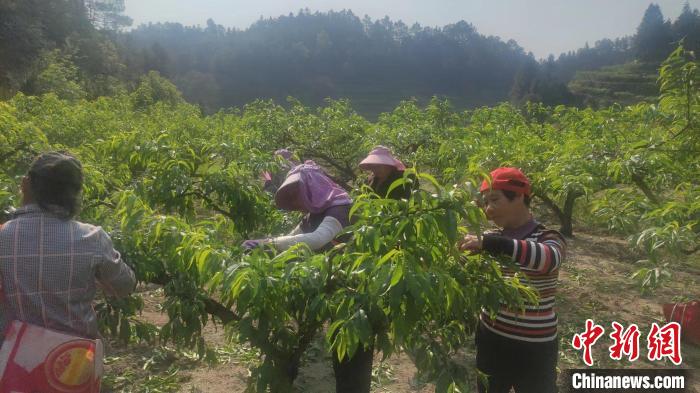 “中国优质黄桃之乡”株洲市炎陵县的高山黄桃已进入挂果期,黄桃基地技术管理员、种植户黎福兰每天带着近10位村民,忙着给自家桃树抹梢。“去年产量有7万斤,供不应求,期待今年也有个好收成。”