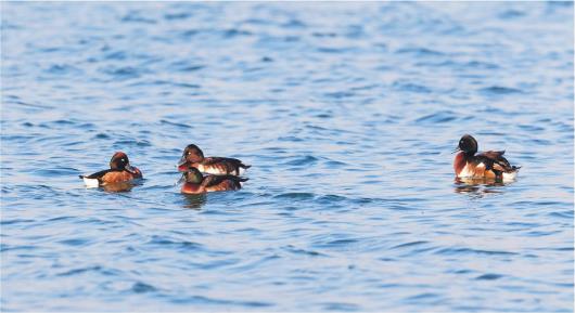 □记者曹儒峰陈晓婉通讯员亓勇报道 今年3月,东平湖观测记录到1500多只青头潜鸭。图为青头潜鸭在湖中戏水。