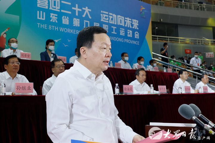 喜迎二十大,运动向未来。6月14日上午,济南奥体中心东荷体育馆内,气氛喜庆热烈。山东省第八届职工运动会在这里隆重开幕。省委书记李干杰出席开幕式并宣布运动会开幕,省委副书记、省长周乃翔致辞。