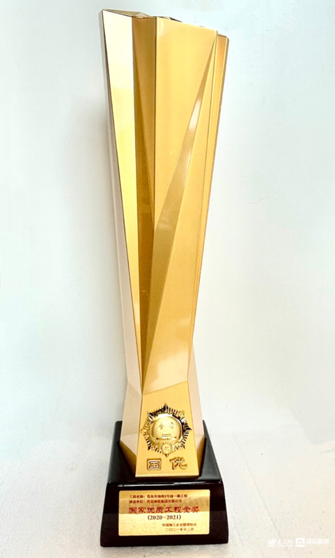青岛地铁2号线一期工程获国家优质工程金奖奖杯