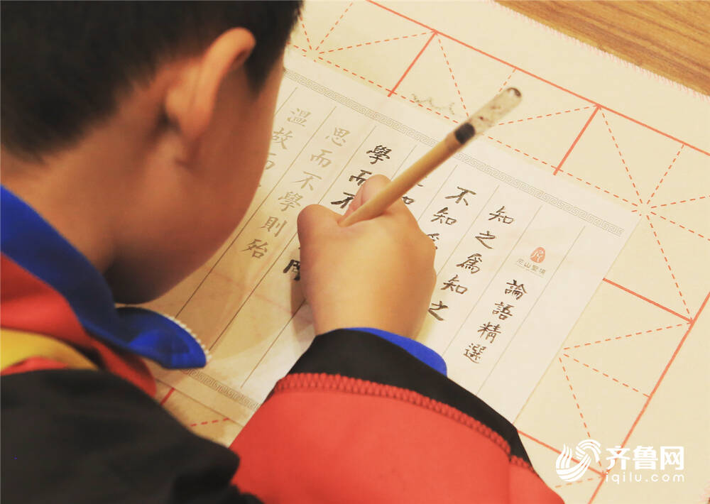 图/在尼山圣境大学堂里手抄论语,是很多孩子研学的重要环节。