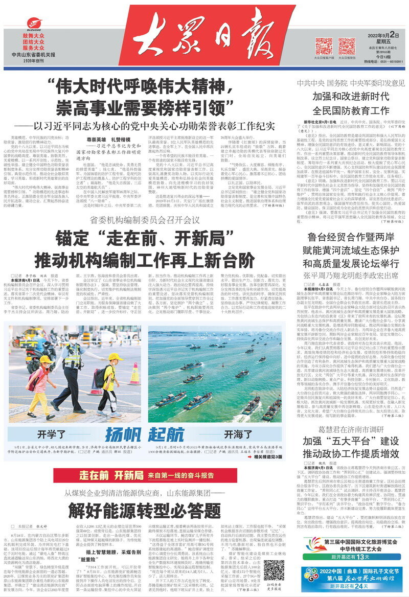 当前,山东深入贯彻落实习近平总书记重要指示要求,认真落实党中央决策部署,坚决扛起“经济大省要勇挑大梁”的责任担当,扎实开展各项工作。9月1日起,大众日报及客户端等新媒体平台推出“走在前 开新局——来自第一线的奋斗报告”大型全媒体主题报道,挖掘全省国有企业、民营企业、中小微企业、个体工商户、农村新型经营主体以及各行各业中的先进典型,展现山东勇担使命、砥砺奋进的生动实践,进一步凝聚起“走在前、开新局”的磅礴力量,以实际行动迎接党的二十大胜利召开。今天刊发第二组报道,聚焦山东能源集团——