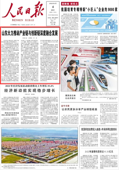 《人民日报》头版头条点赞山东:大力推动产业链与创新链深度融合发展