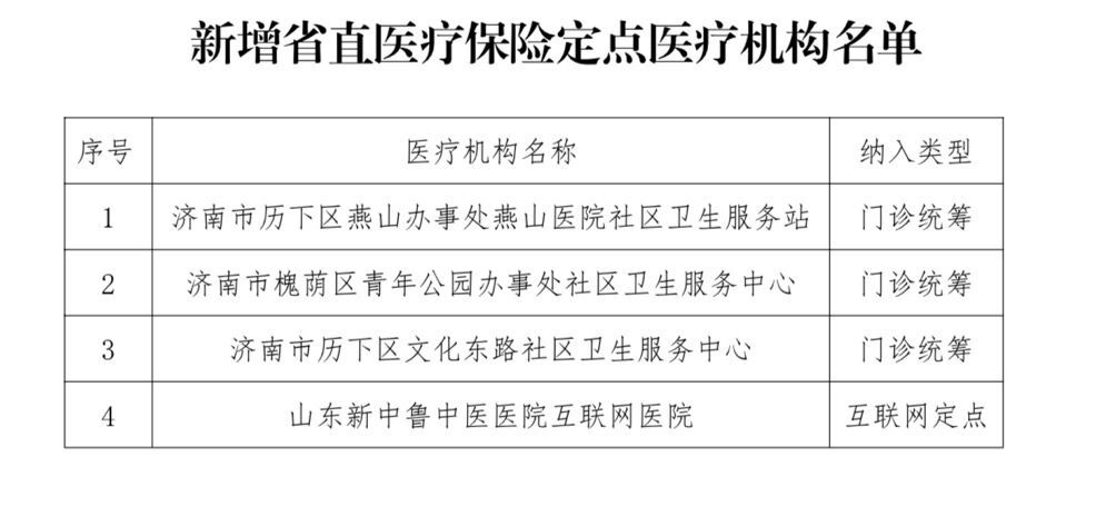 近日,山东省医疗保险事业中心印发《关于公布济南市历下区燕山办事处燕山医院社区卫生服务站等医疗机构为省直医疗保险协议管理医疗机构的通知》,根据有关规定,经审核评估、结果公示,确定增加济南市历下区燕山办事处燕山医院社区卫生服务站等4家医疗机构为省直医保协议管理医疗机构。