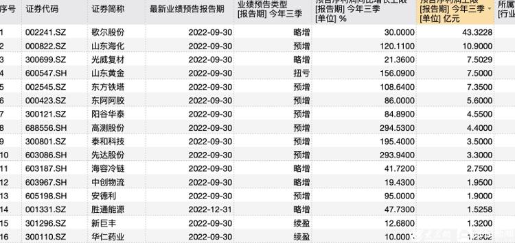 24家鲁企晒三季度成绩单:化工领衔、23家预喜、12家利润翻倍