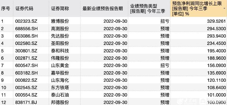 12家鲁企预计前三季度净利翻倍,雅博股份净利预增超3倍