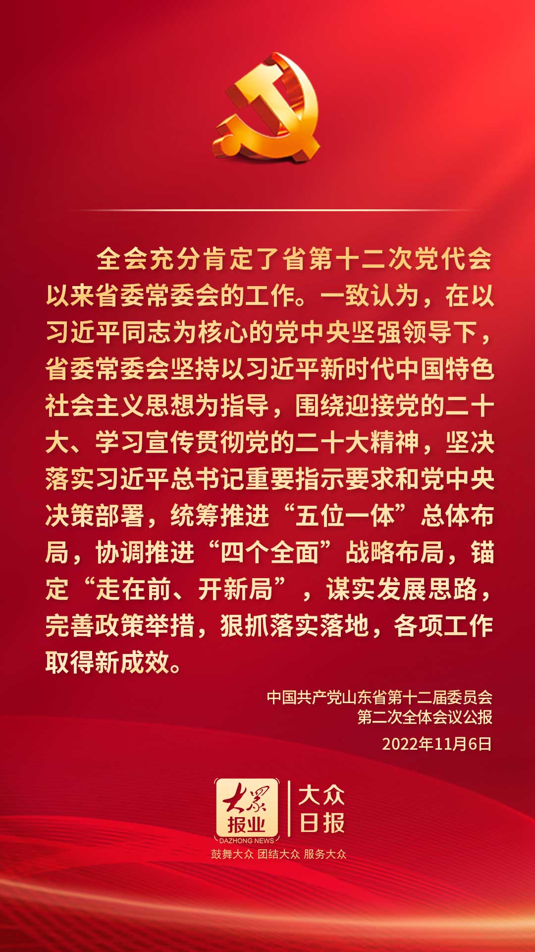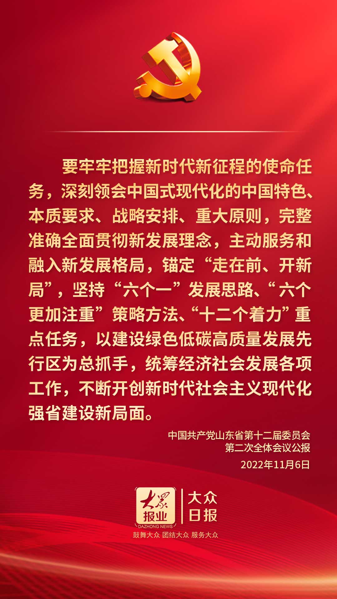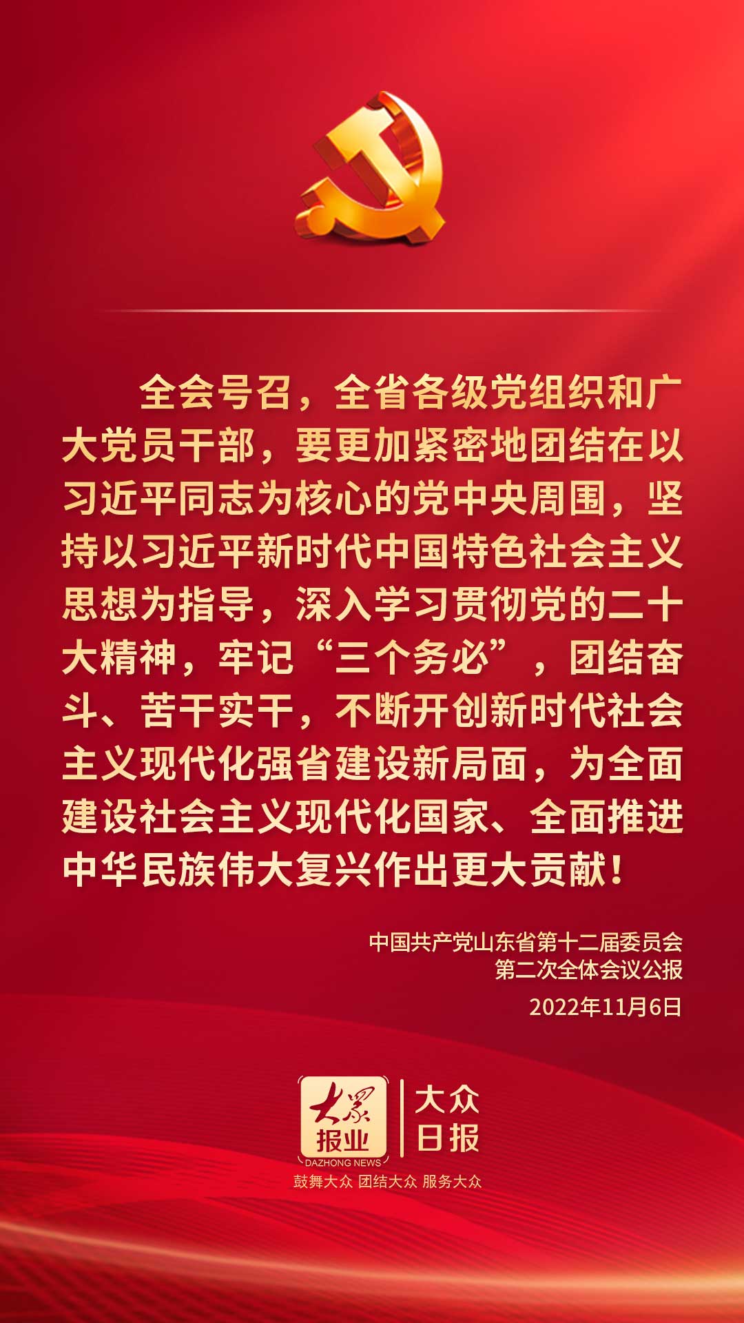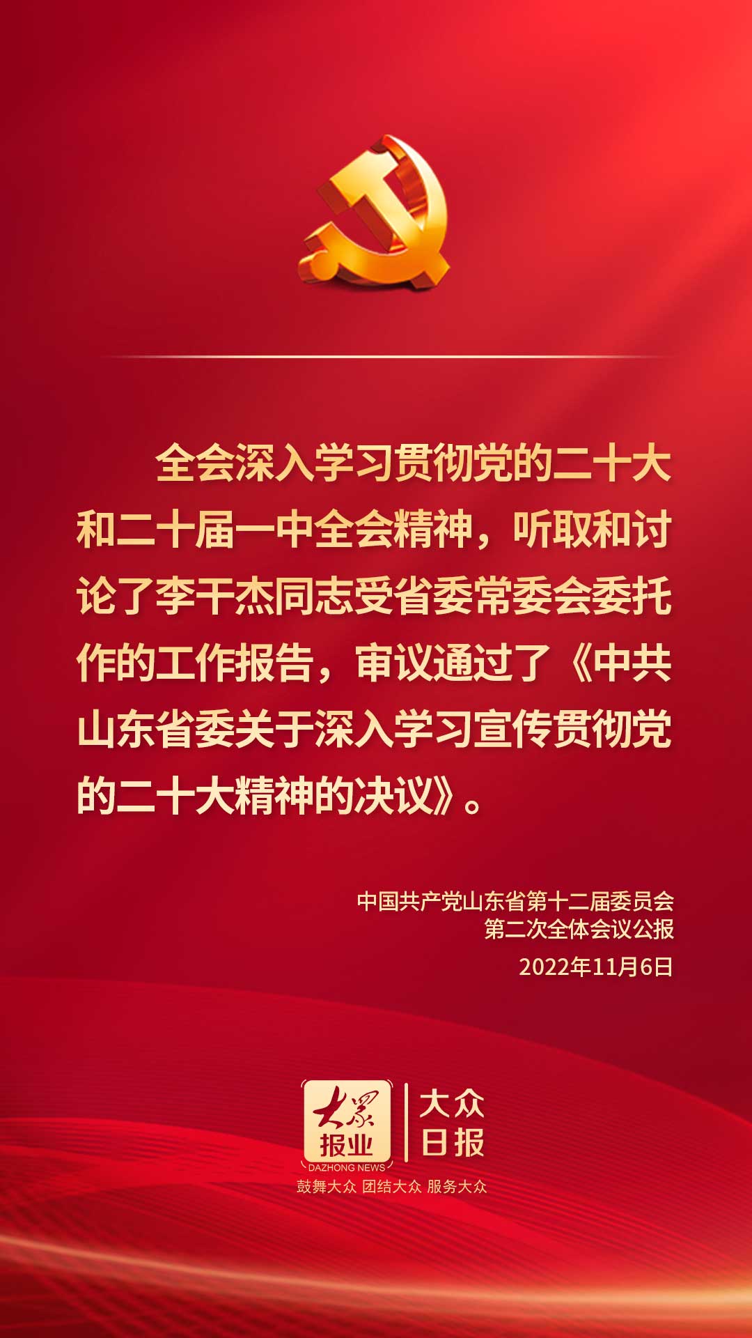 中国共产党山东省第十二届委员会第二次全体会议,于2022年11月5日至6日在济南举行。