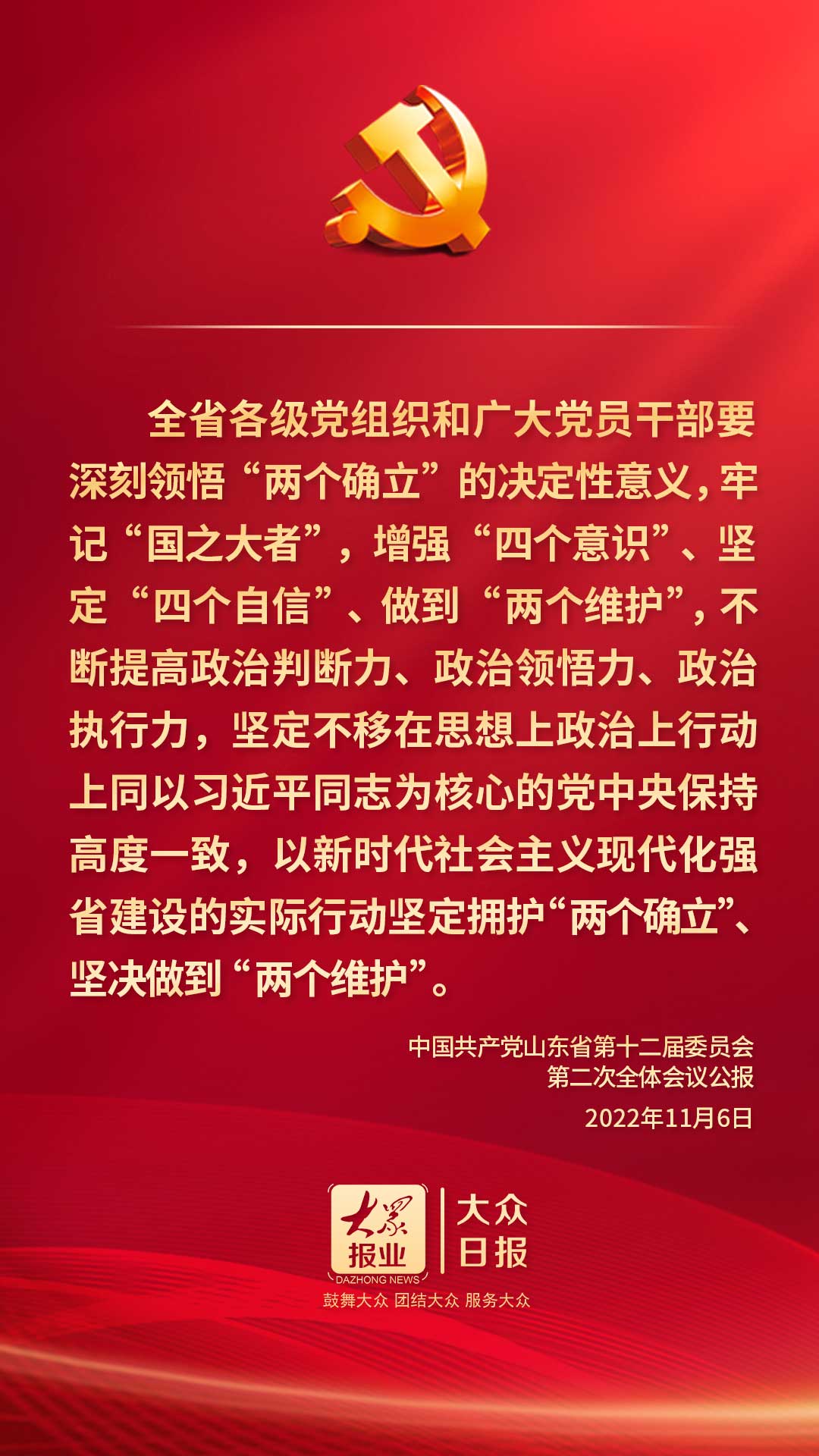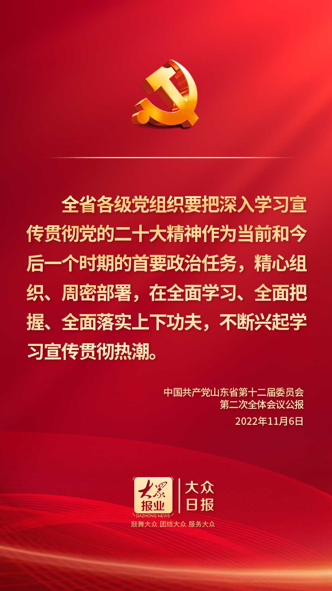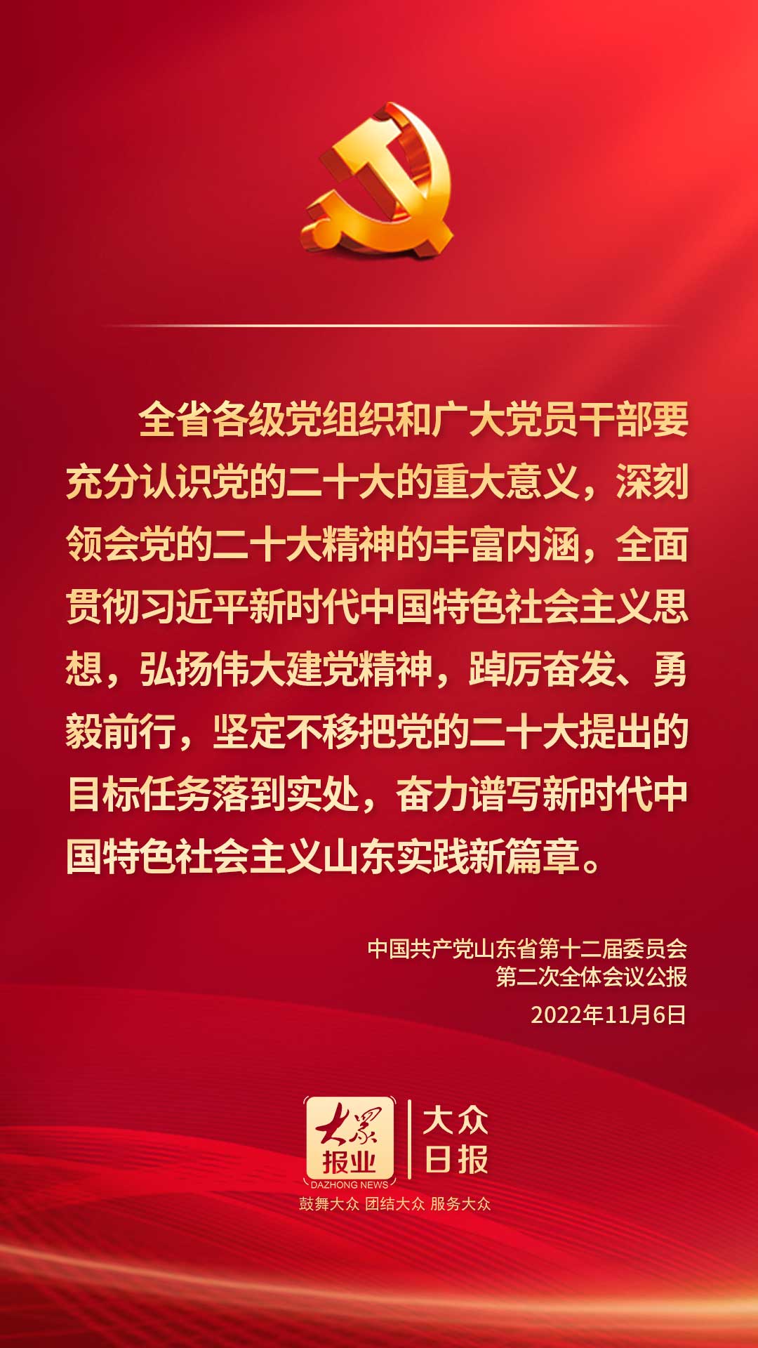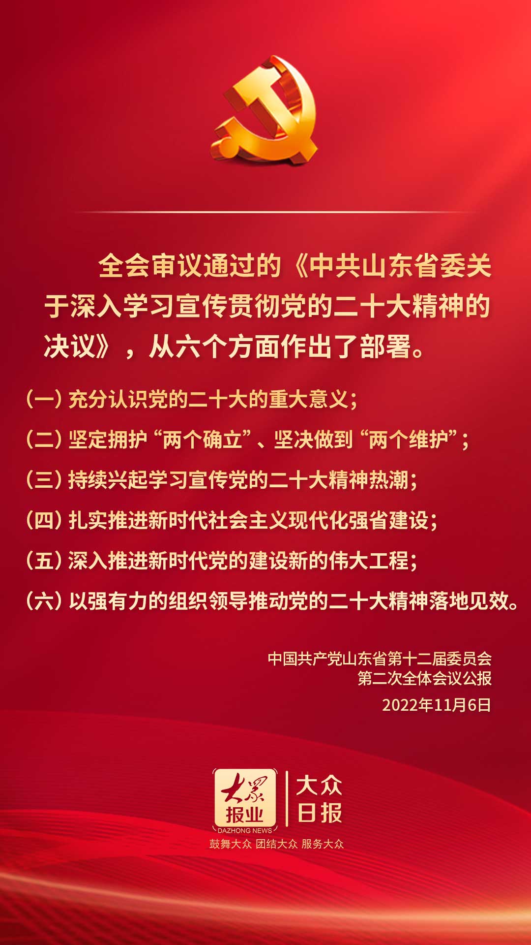 中国共产党山东省第十二届委员会第二次全体会议,于2022年11月5日至6日在济南举行。