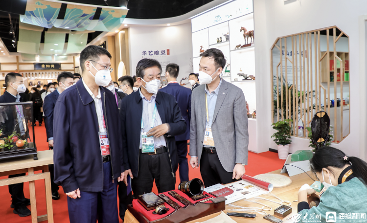 淄博丝绸、博山琉璃、曲阜琉璃瓦、肥城桃木雕、海阳银壶、泰山玉、临朐铜雕、昌邑毛笔、菏泽鲁锦……这些或构思精巧、或造型灵动的“山东手造”,也组团亮相进博会,更新着世界对山东的认知,更新着山东的文化形象。