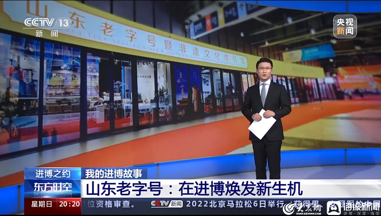 进博会召开期间,中央电视台东方时空栏目对山东馆进行专题采访,在黄金时间段播出《进博之约我的进博故事山东老字号:在进博焕发新生机》,全面报道山东省近年来参加进博会人文交流活动的成果,引发热烈反响。