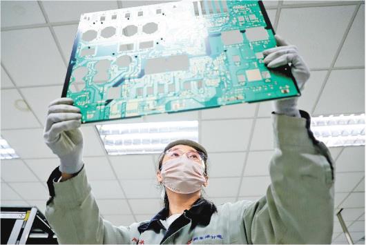 近日,青岛新东洋计电有限公司,质检人员在抽检产品。该公司主要生产和研发电视机电源板等高科技电子产品,产品全部出口海外。